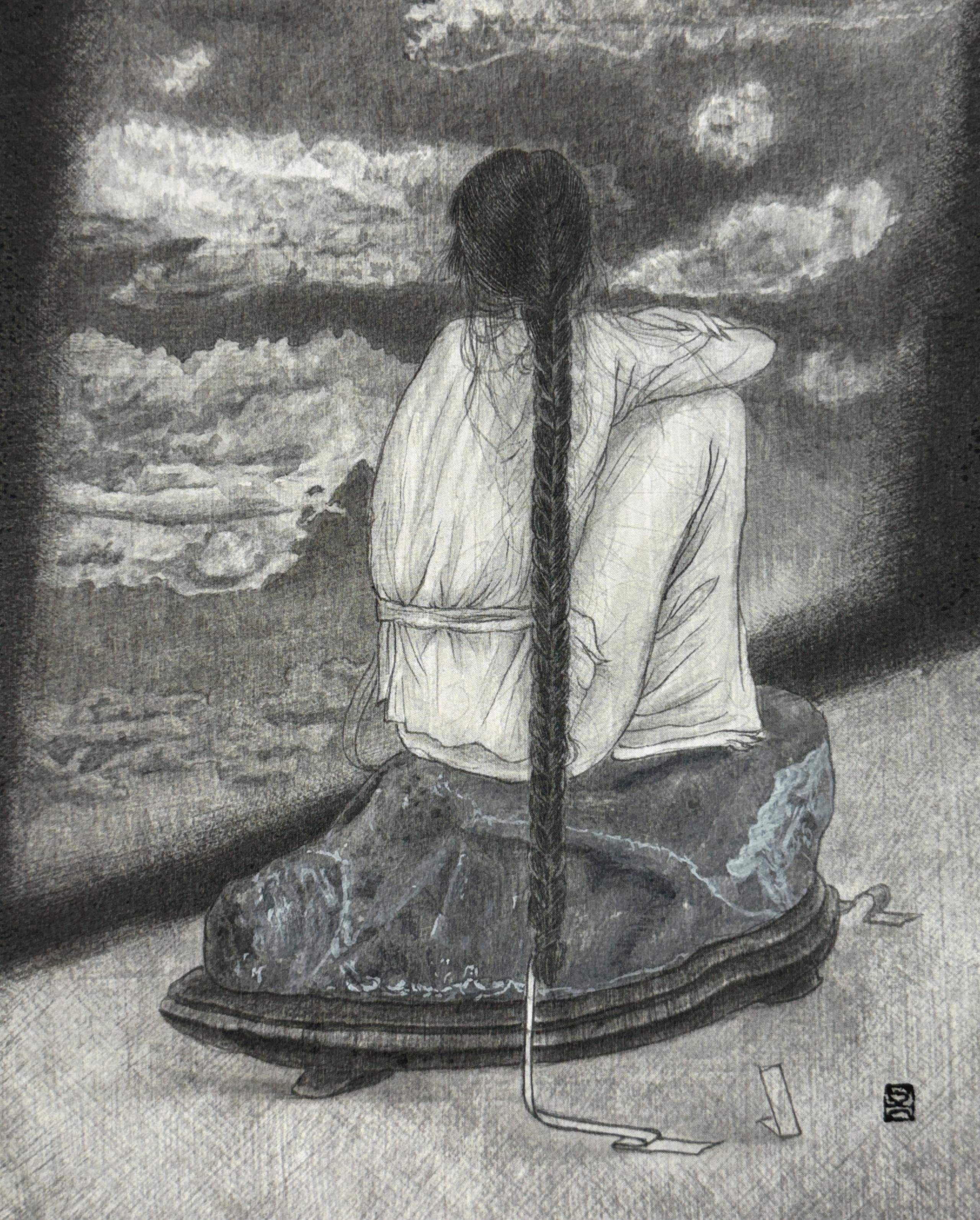 Muk(Ink stick) and Korean traditional pigments on glue-sized silk